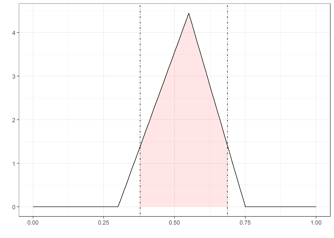 Now, take the optimistic value (\(a\)) and pessimistic value (\(b\)) and calculate the difference (\(= b - a\)). This difference roughly measures how sure or certain you are about your probability estimate. The smaller or larger that difference, the more or less sure or certain you feel about it. If that difference is zero, then you feel completely certain (\(a = m = b\)).